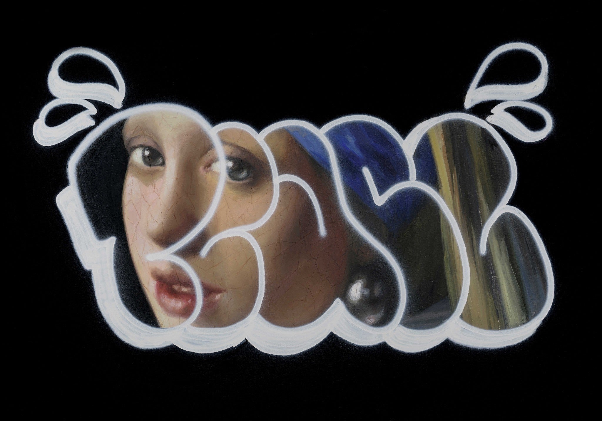 Between Worlds bridges classical oil painting with the raw energy of contemporary street aesthetics. Drawing on Renaissance-inspired techniques and the immediacy of graffiti, Safeyah's work occupies the in-between space where history collides with rebellion.